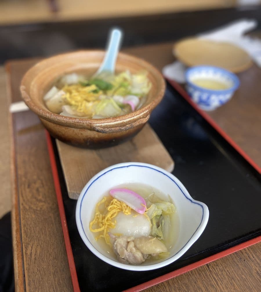 さっそく入店ですがほぼ満席。丁度空いた席にうまく収まりさっそくのご当地の季節限定具雑煮初体験です。
