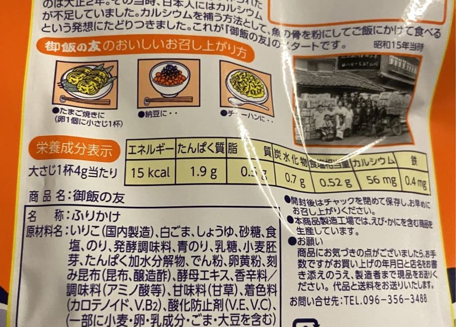 当時の日本は、食糧不足でカルシウム摂取が不足していたといい、そこで薬剤師の吉丸が、魚の骨を細かくし味付けをして商品化したといいます。