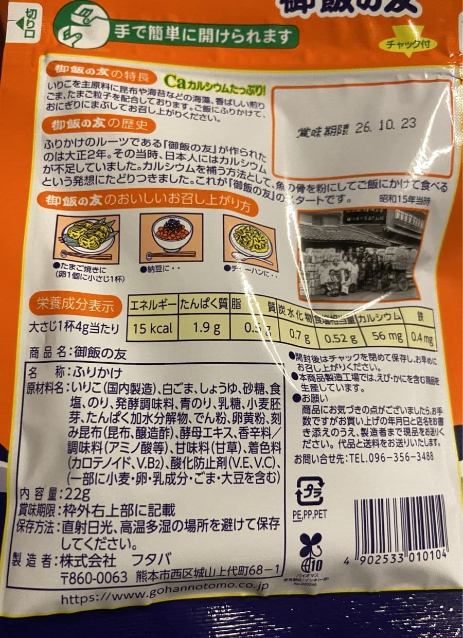 大正2年(1913年)に薬剤師の吉丸末吉によって考案された「ふりかけの元祖」といわれる熊本を代表するローカルフードの一つです。
