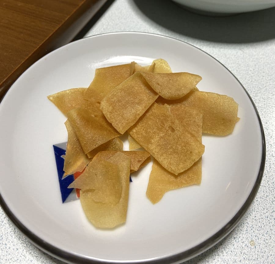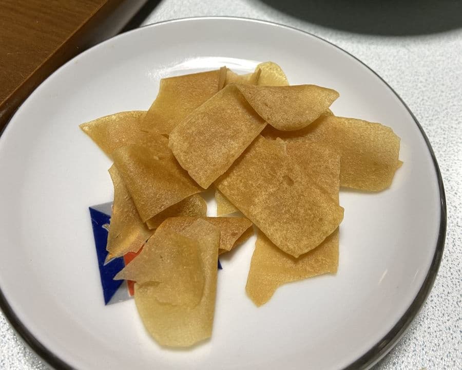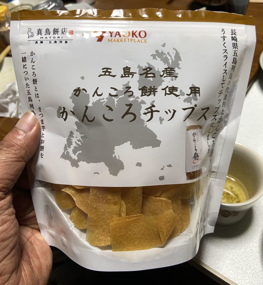 年末に長崎の知人宅でお世話になった際に名物のかんころ餅をいただきましたが、先日スーパー「ヤオコー」さんで表題のチップスに出逢いさっそく購入し、その長崎の知人にも味見をしていただきました。